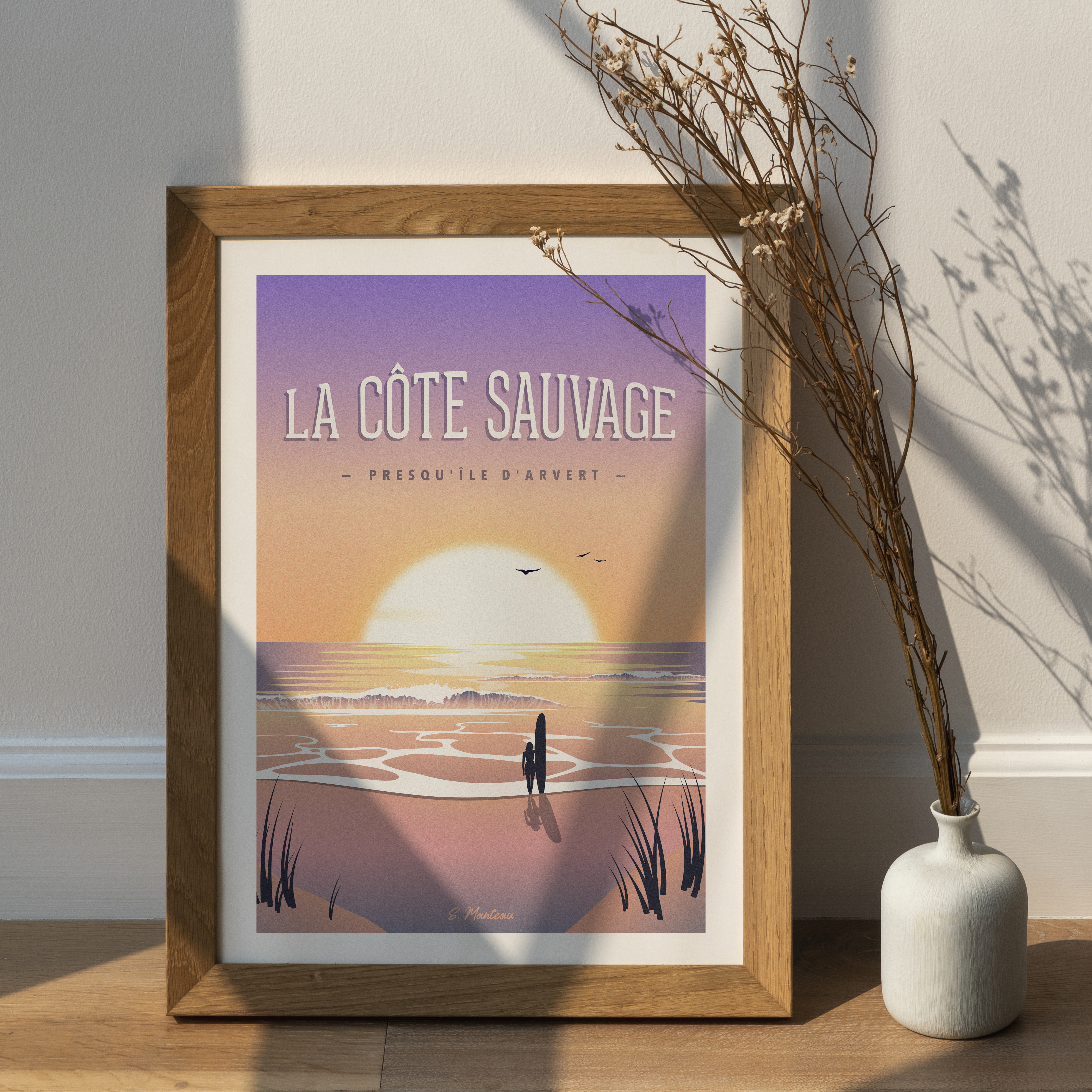 Ce projet met en lumière la beauté du pays royannais à travers deux affiches illustrant la Côte Sauvage et le Phare de la Coubre. Réalisées dans un style minimaliste, elles jouent sur des aplats de couleurs douces, des formes simples et une atmosphère lumineuse évoquant la quiétude du littoral atlantique. Ces visuels rendent hommage au charme naturel de cette région entre terre, dunes et océan.