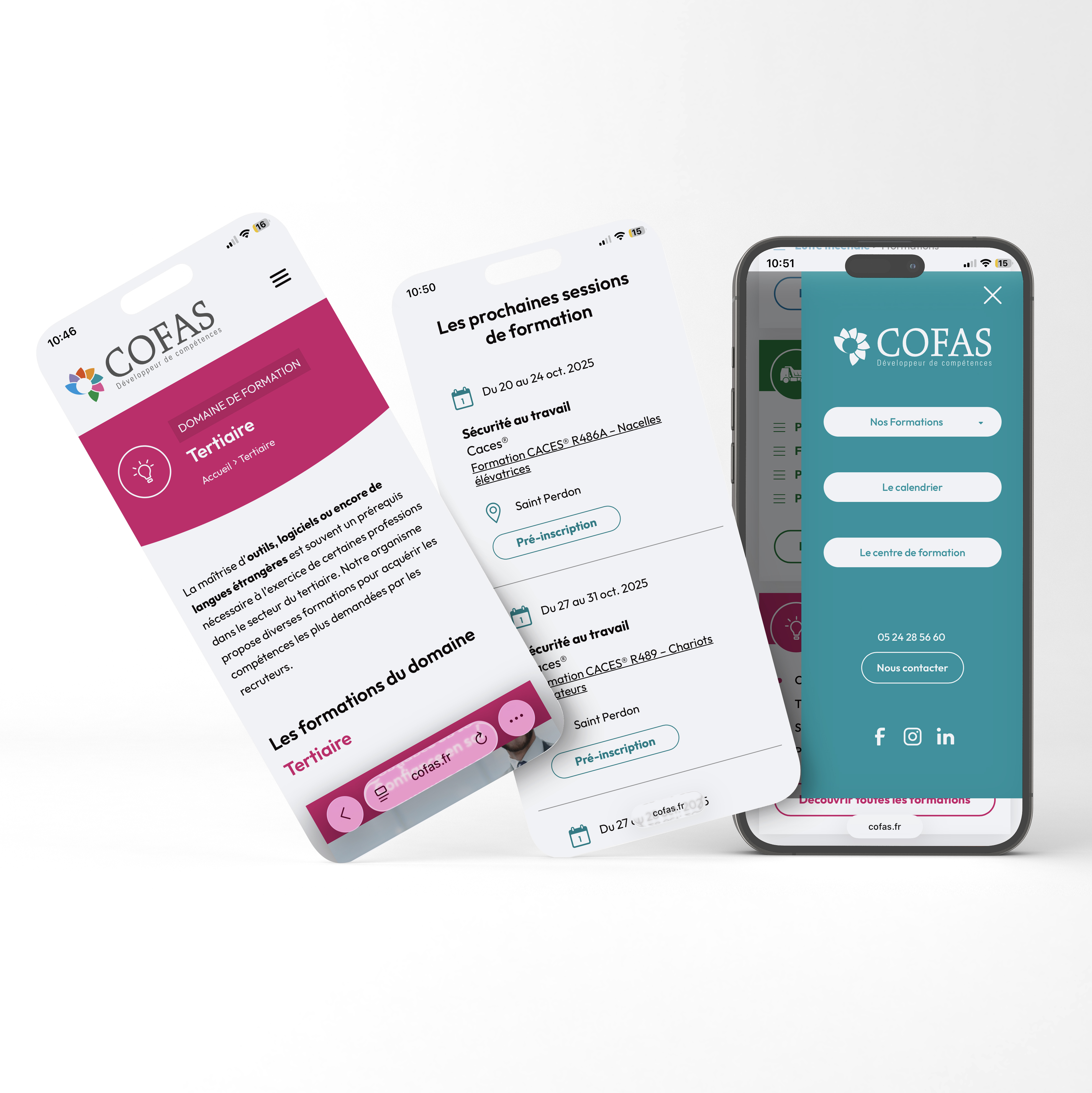 Réalisation des maquettes du site web de Cofas, organisme de formation, en partenariat avec l’agence web Idetik. Le projet visait à concevoir une interface claire et moderne, valorisant l’offre de formation tout en facilitant la navigation et l’accès à l’information.