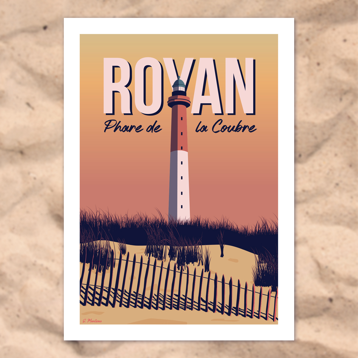Ce projet met en lumière la beauté du pays royannais à travers deux affiches illustrant la Côte Sauvage et le Phare de la Coubre. Réalisées dans un style minimaliste, elles jouent sur des aplats de couleurs douces, des formes simples et une atmosphère lumineuse évoquant la quiétude du littoral atlantique. Ces visuels rendent hommage au charme naturel de cette région entre terre, dunes et océan.